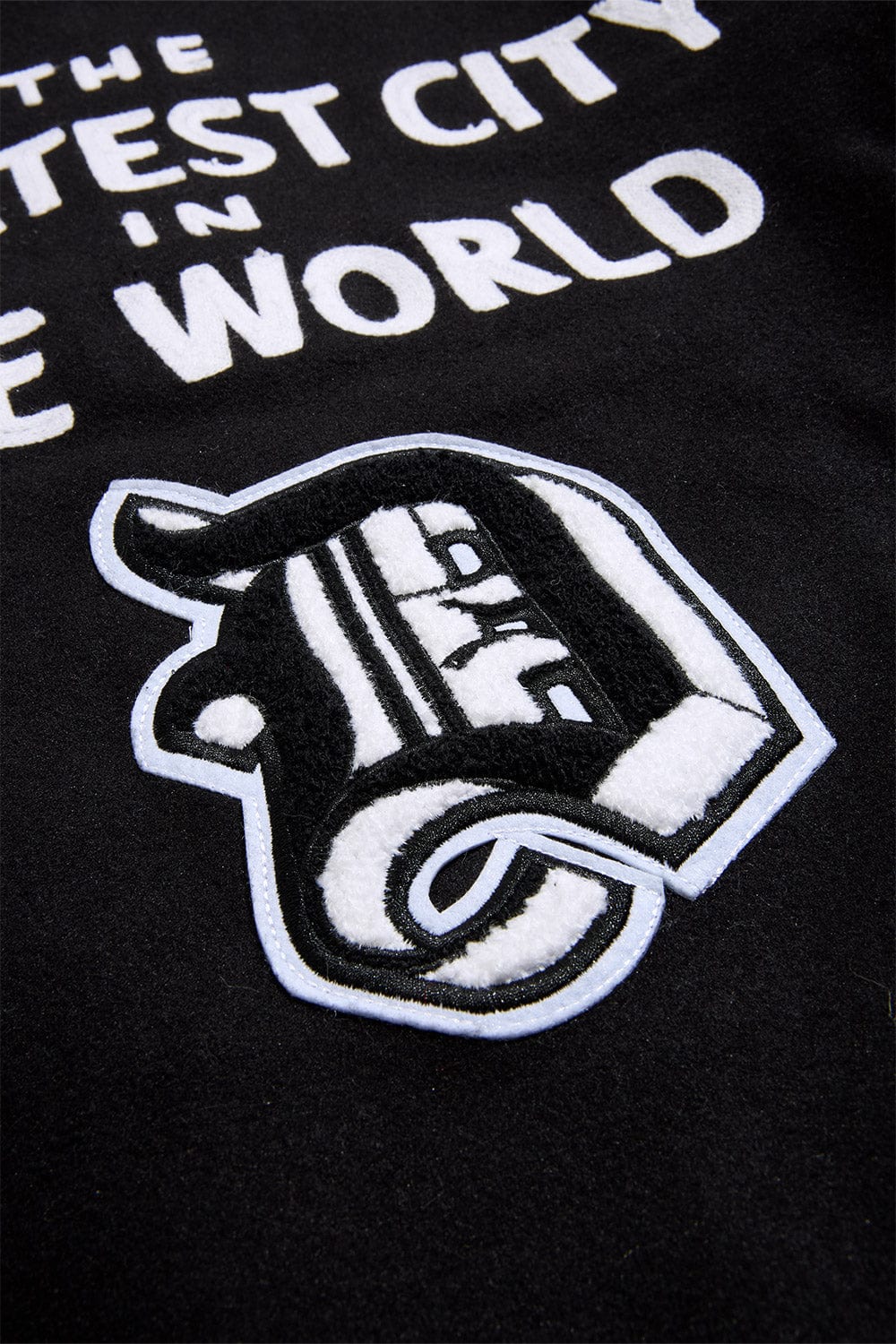 *Shomari is 6'1" and weighs 185 lbs. He is wearing our D-Town Varsity Jacket (Size Large) in Black