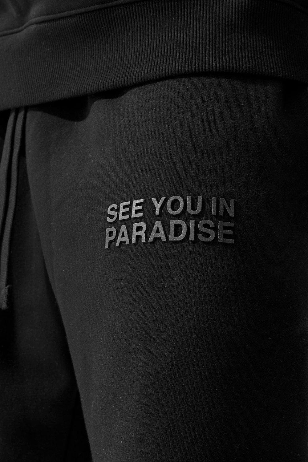 - Tonal high density "See You In Paradise" print on upper left thigh